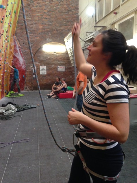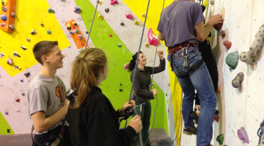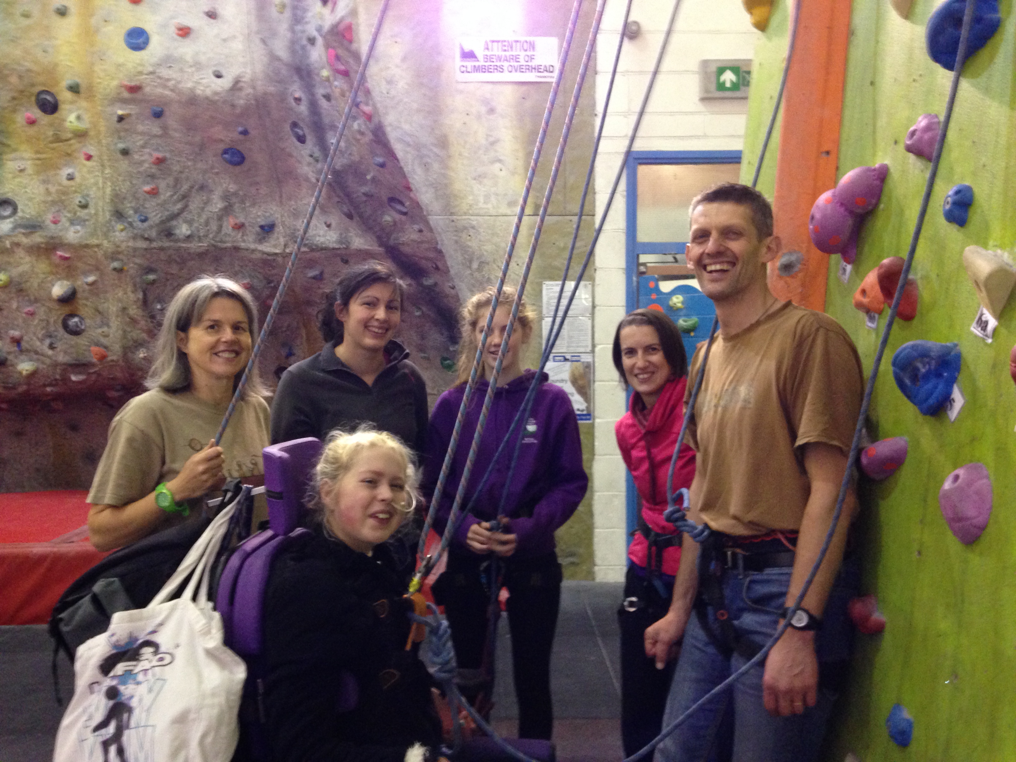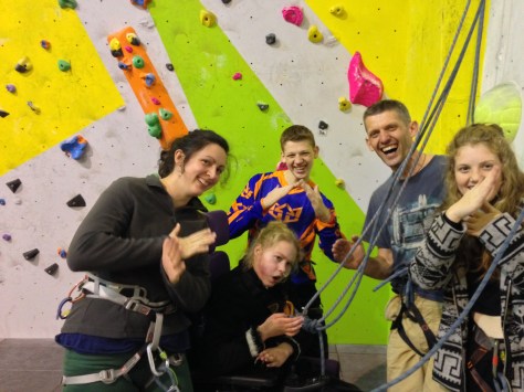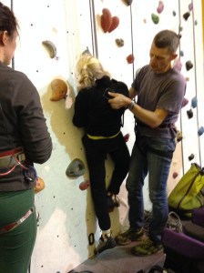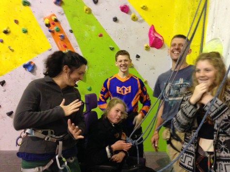 Instead Hazel will belay. And Annie, another teacher, will be along soon too, to see the set-up before she and Nick take 3 more school students climbing. (The next 3 are wheelchair users: they’ll be bringing a hoist for the student that doesn’t do standing transfers. Great! 🙂