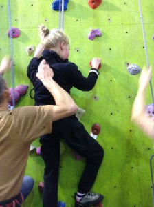 Now for climb two. Nick says we shouldn’t say anything to Clare about placing her hands and feet – up to her to plan her route. It’s really hard not to make suggestions, oops.